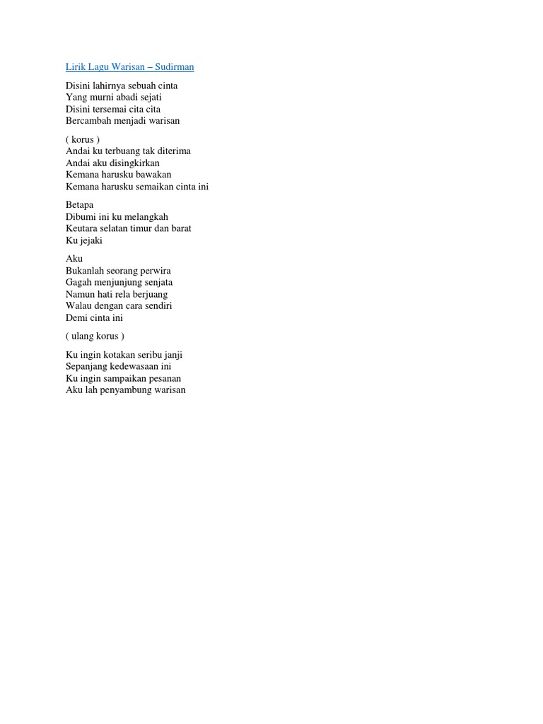 For Sabah Demi Warisan Sabah Sabahans For Sabah Penyanyi. Lirik Warisan Pdf - Warisan disini lahirnya sebuah cinta yang murni abadi sejati disini tersemai cita cita bercambah menjadi warisan korus. Bertekad Cemerlang Menjadi Budaya.