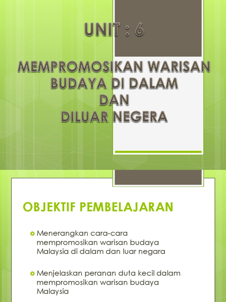Unit 6 Promosi Warisan Budaya Di Dalam Dan Luar Negara Pdf