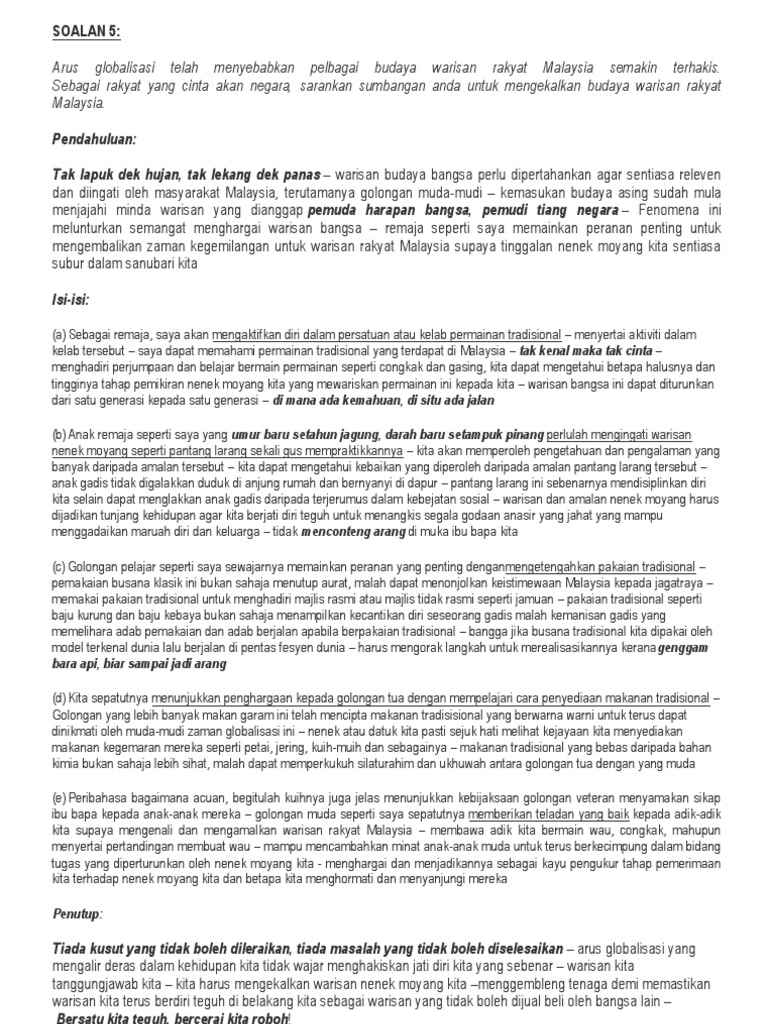 Anda sebagai rakyat yang cinta akan negara sarankan sumbangan anda untuk mengekalkan budaya warisan rakyat Malaysia. Usaha Mengekalkan Budaya Warisan Rakyat Malaysia Peribahasa Melayu jelas menyatakan bahawa tak basah dek hujan tak lekang dek panas. Daya Saing Negara Malaysia Pdf.