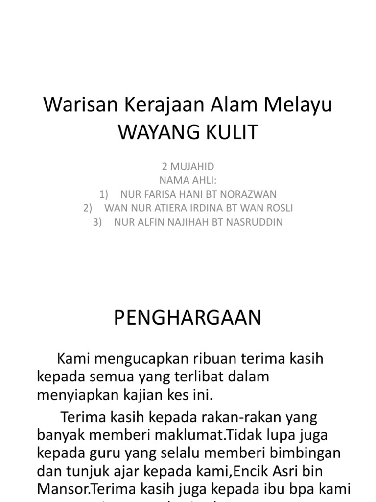 1 NUR FARISA HANI BT NORAZWAN 2 WAN NUR ATIERA IRDINA BT WAN ROSLI 3 NUR ALFIN NAJIHAH BT NASRUDDIN PENGHARGAAN Kami mengucapkan ribuan terima kasih kepada semua yang terlibat dalam menyiapkan kajian kes ini. Contohnya Raja Champa dianggap sebagai Dewa Siva. Kerajaan Funan merupakan kerajaan Alam Melayu yang terkenal dan mempunyai wilayah pengaruh yang luas.