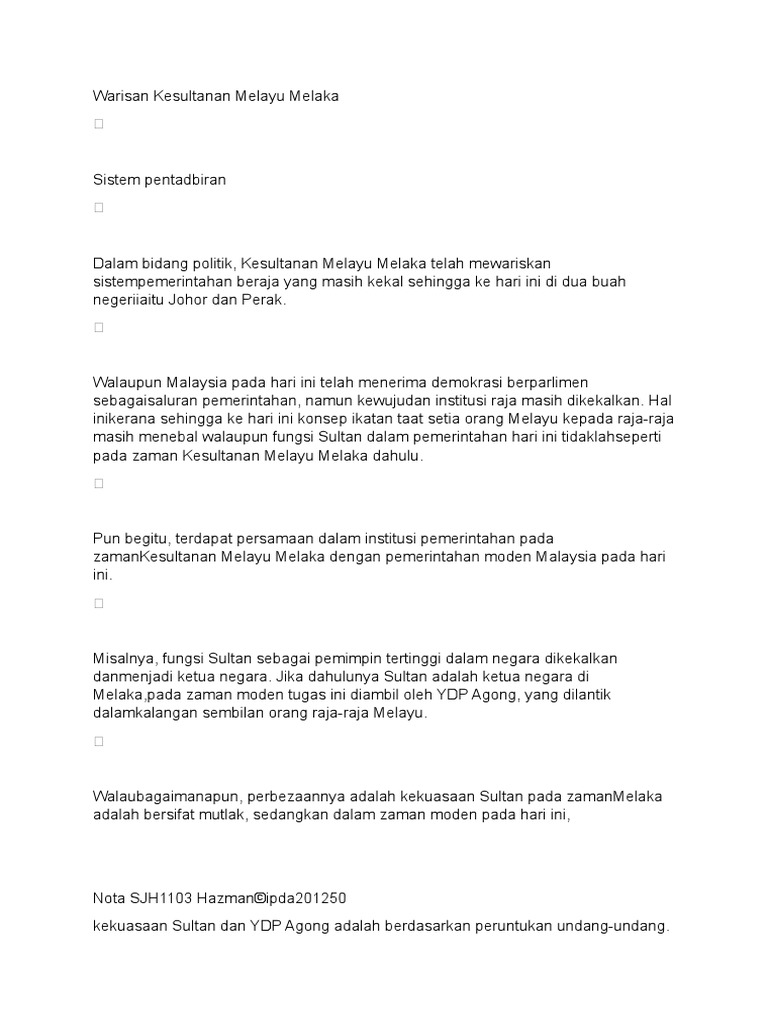 Sumbangan Kesultanan Melayu Melaka Kepada Negara Pdf