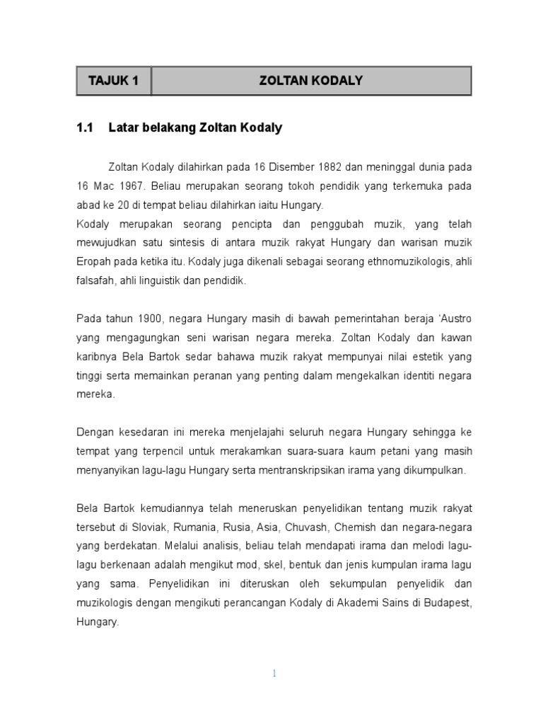 Dan oh ya Roy adalah bekas penyanyi Lefthanded. Falsafah dan Konsep Kodaly Kodaly memulakan satu usaha dalam penyelidikan prinsip dan bentuk muzik Hungary. Selain blok utama terdapat juga bangunan-bangunan berasingan iaitu pos pengawal surau prasekolah serta kantin.