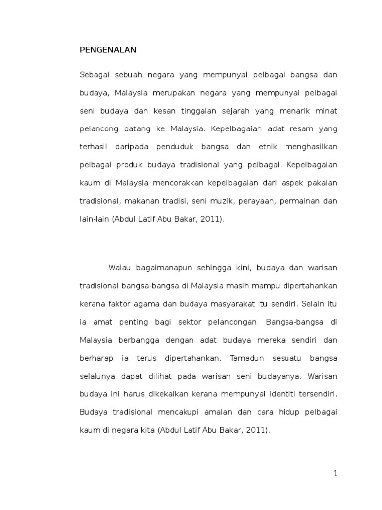 Lihat dokumen lengkap 31 Halaman -. Hal ini termasuklah pakaian makanan adat resam seni dan sebagainya.