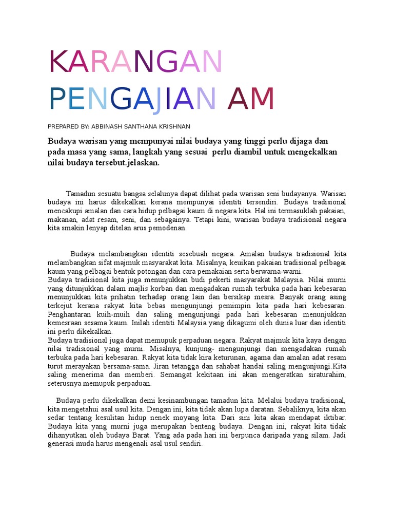 Karangan bm pt3 yang terbaik. Menjaga warisan budaya menjadi kewajiban seluruh lapisan masyarakat indonesia. Cara untuk mengekalkan keharmonian masyarakat berbilang kaum marcapada ini.
